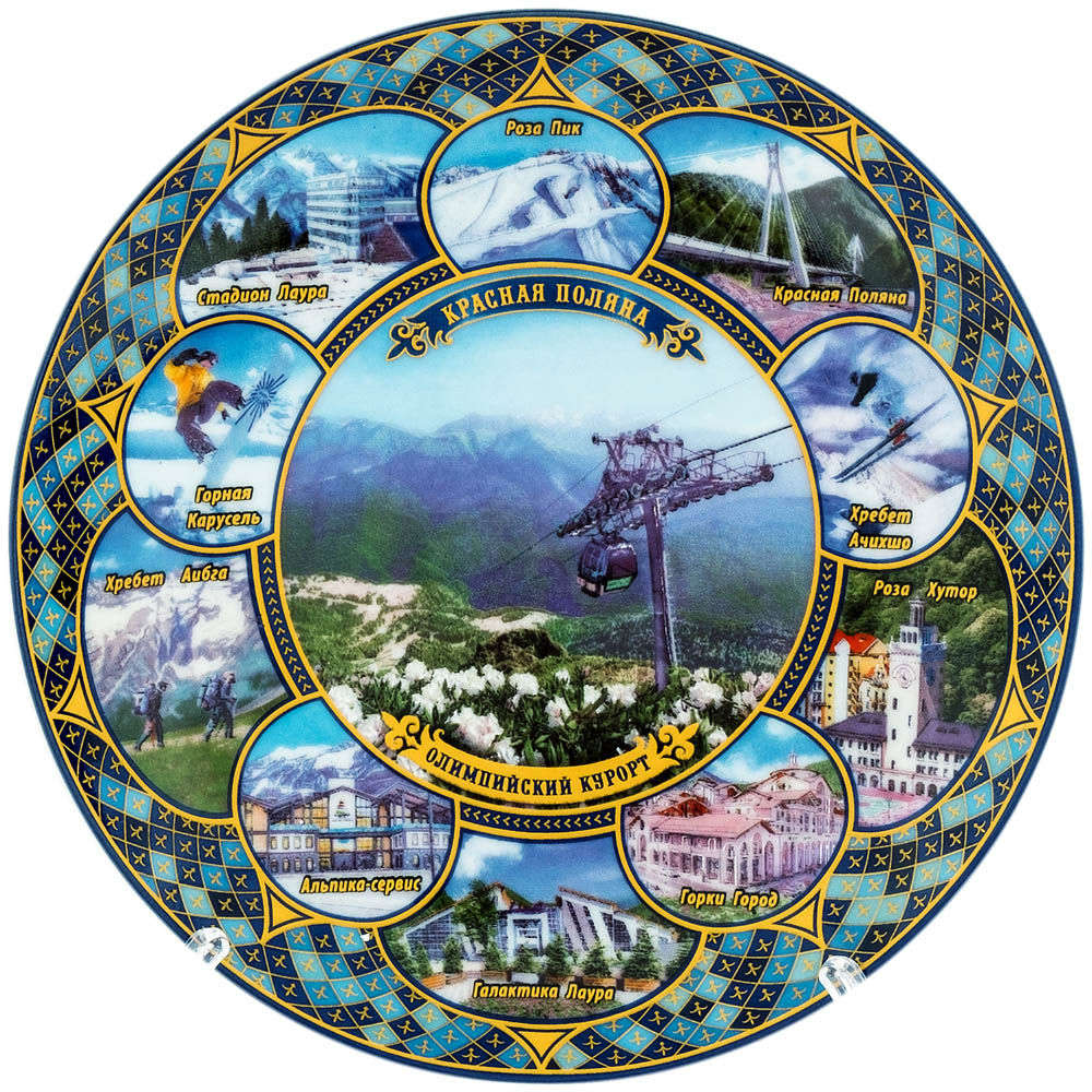 Тарелка фарф. D20 мозаика "Красная поляна. Подъемник"